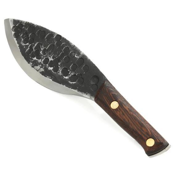 A criação desta faca é ainda mais emocionante do que a aparência rústica e dura dela. Foi forjada a mão e martelada por ferreiros profissionais com técnicas antigas de forja, que provaram ser a melhor maneira de fazer facas de alta qualidade e de longa duração.