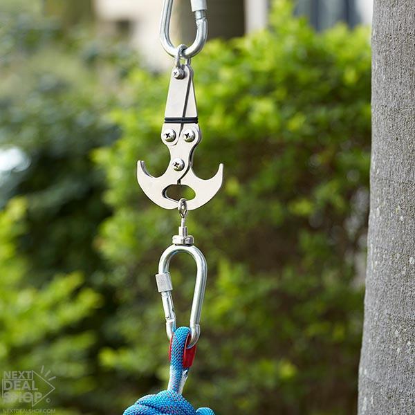Você gosta de acampar ou caminhar? Leve este Gancho Gravitacional Multifuncional para a sua próxima viagem! Ele é um gancho multifuncional com mandíbulas que se abrem automaticamente devido à gravidade e fecham quando invertidos. Amarre uma corda ou cordão capaz de aguentar bastante peso ao anel embaixo para que você possa usá-lo para ter apoio ou puxar um carro quebrado.