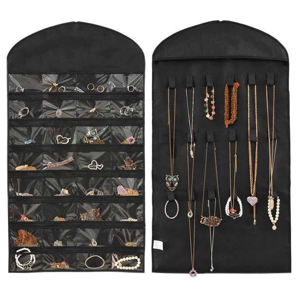 Organize suas jóias com este organizador pendurado de jóias! Este organizador de jóias possui 32 bolsos e laços de velcro na parte de trás para armazenar jóias facilmente.