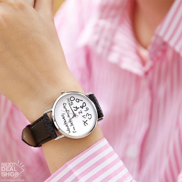 Relógio com Pulseira de Couro "Estou Atrasada"