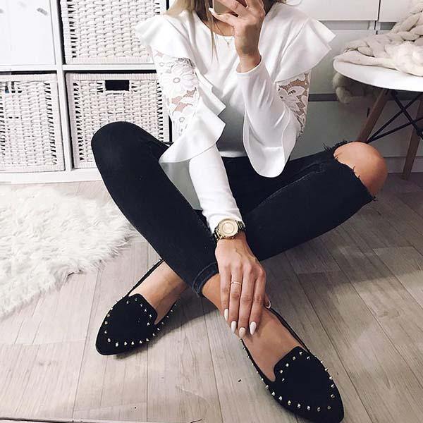 O detalhe de babados com laços nas mangas torna esta peça muito fashion! Combine-a com jeans skinny de cintura alta ou uma mini-saia e saltos para um encontro ou evento glamoroso!