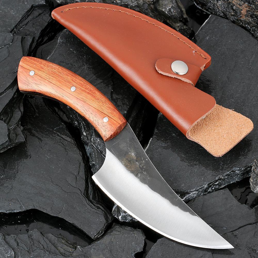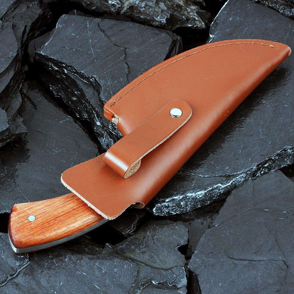 Essa faca para açougueiros profissionais vem com um estojo artesanal, que acaba tornando mais fácil o transporte da faca para onde quer que você vá.