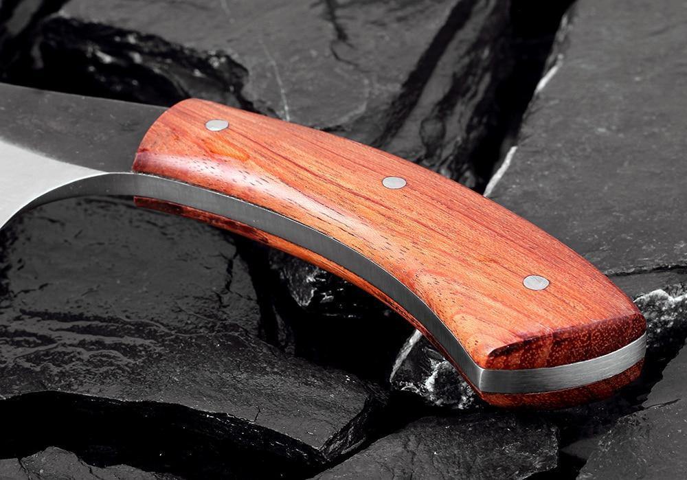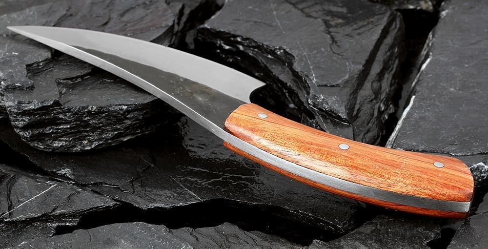 A lâmina dessa faca é extremamente afiada e estreita, que faz com que cortar carne e vegetais se torne uma tarefa muito simples. O cabo de madeira foi projetado para ser muito confortável ao segurá-lo.